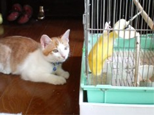 ネコとインコの不思議なコラボ生活を満喫中☆